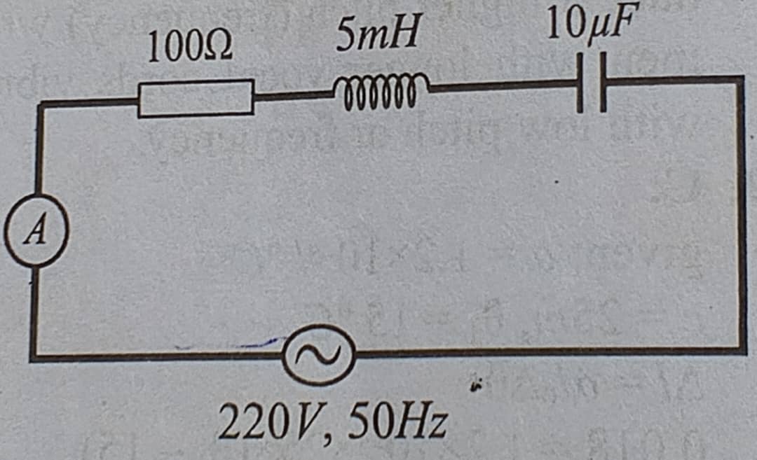 14. In the given circuit, what is the ammeter reading given that the voltage across the capacitor and inductor are 300 volts each